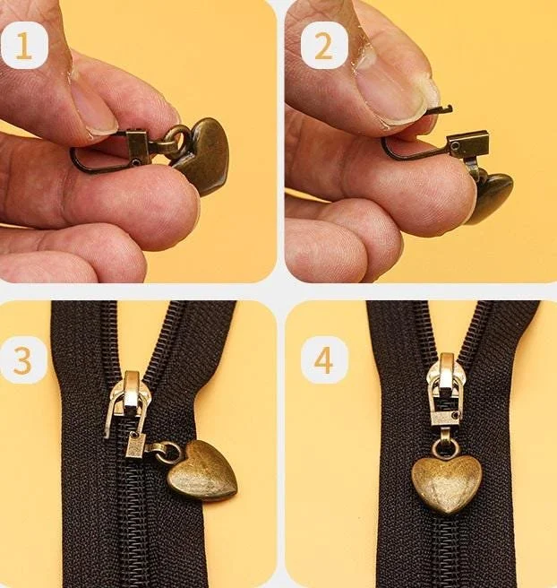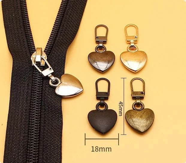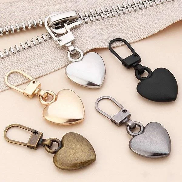 Zipper Pulls Pretty Heart Shape 5 Colors