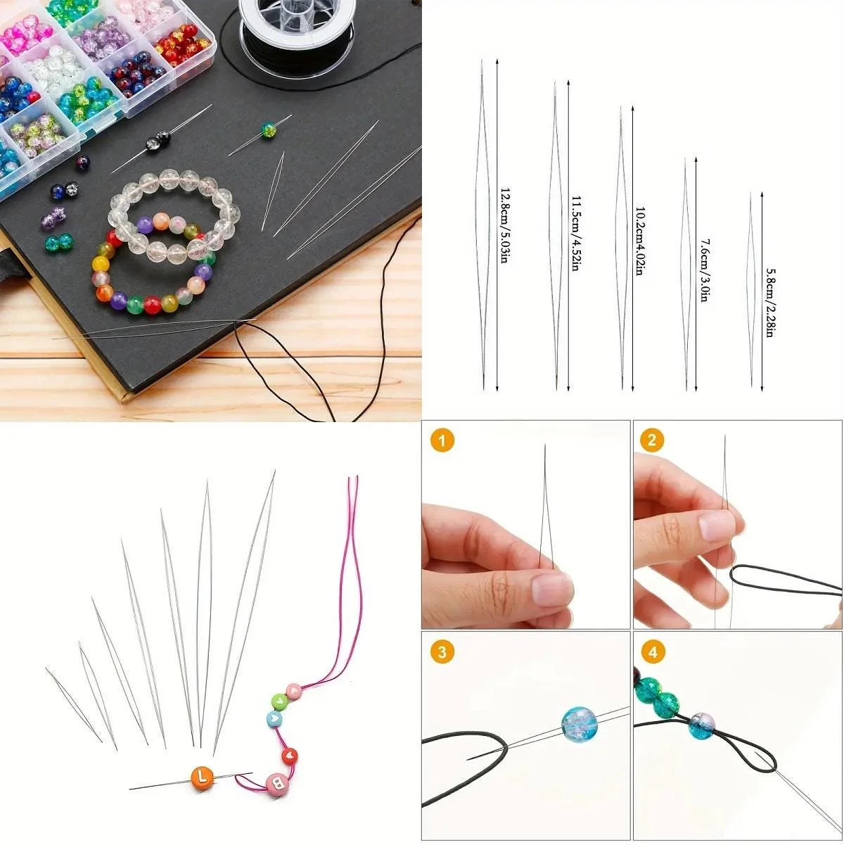 Open Eye Beading Needle Easy Beader 5 Piece Set 7 Sizes to Choose From
