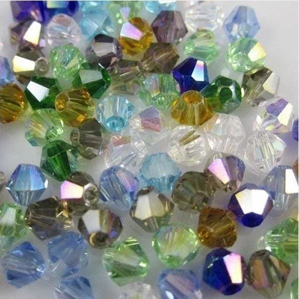 4MM Bicone AB Faceted Glass Beads 10 Brilliant COLORS to Choose from or Mixed Variety 98-100 Pieces
